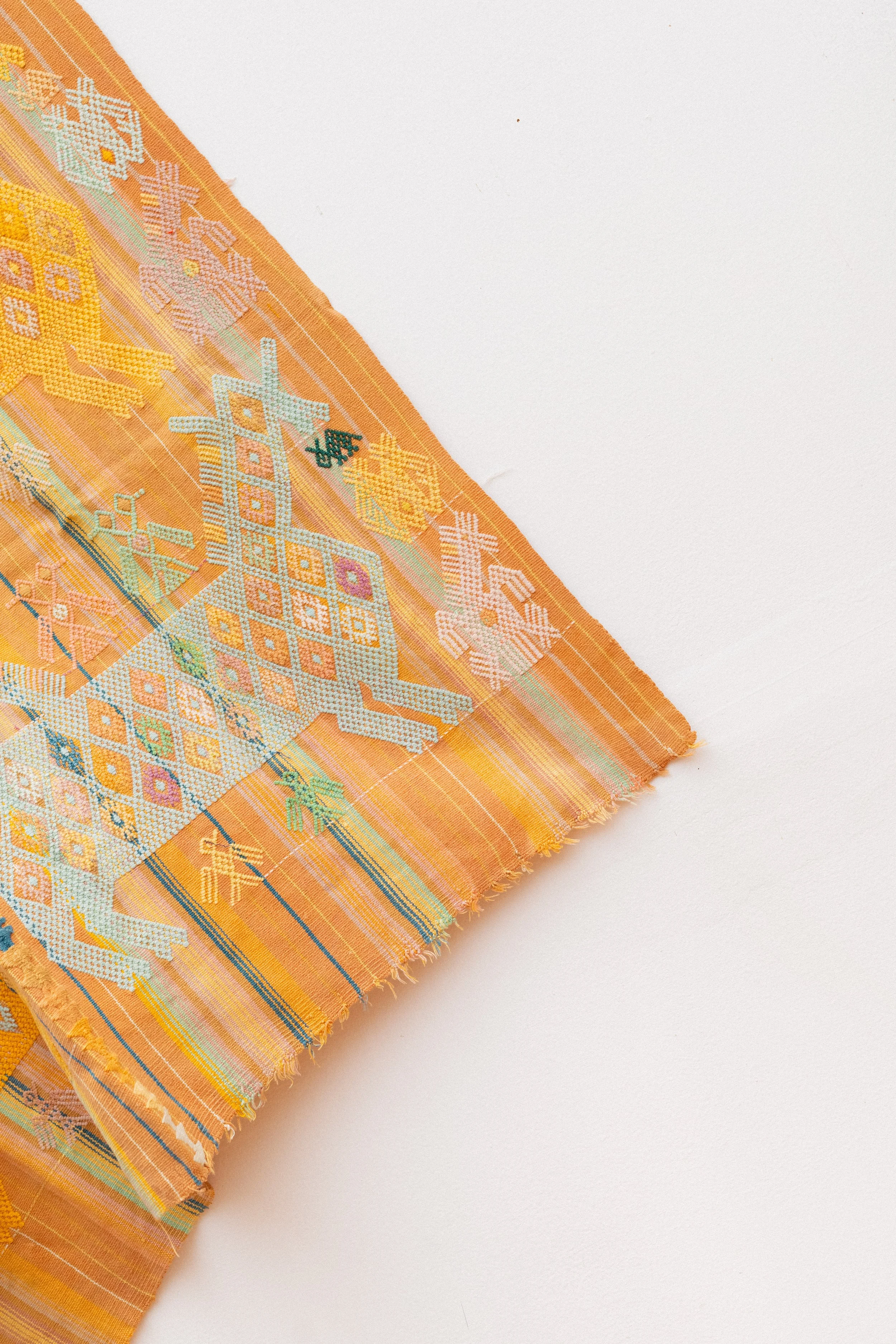 This piece is ideal as a table top piece, framed as decorative art, or left complete and backed with another fabric and turned into a pillow. Please do not purchase this piece if you intend to cut it. Dimensions are: Long 30" x wide 33.5". Due to the delicate nature of vintage, some imperfections are to be expected.